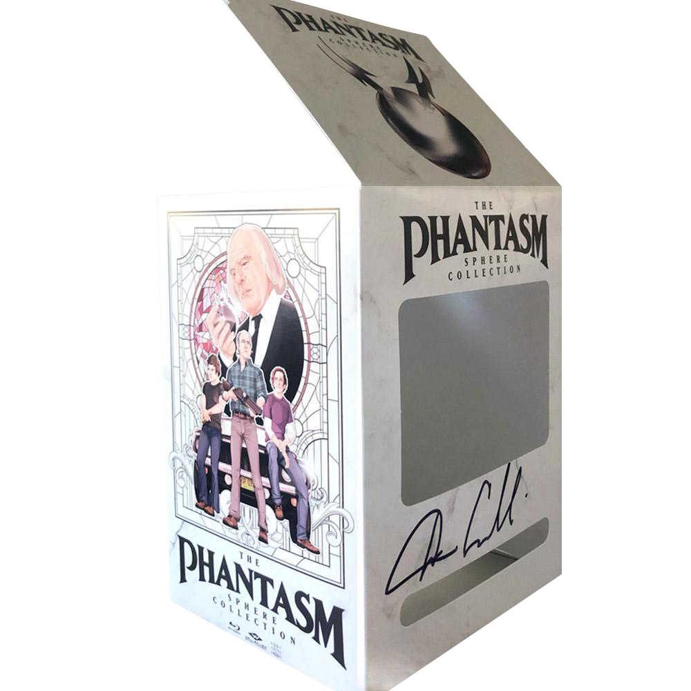 We have just a very few copies of the autographed box cover for the new Phantasm Sphere Collection Blu-ray box set. This is a new, near-mint copy of the outer sleeve, from the original print run, which comes autographed on the cover by Phantasm creator Don Coscarelli.